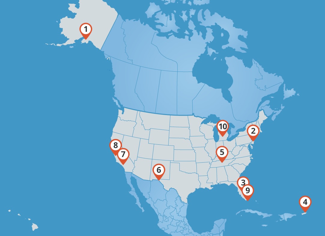 Excluding the leading state, Grand Rapids, Michigan followed close behind in fourth, accompanying state partner Detroit in the top 10. Anchorage, Alaska registered fifth place, with Spokane, Washington in sixth place.